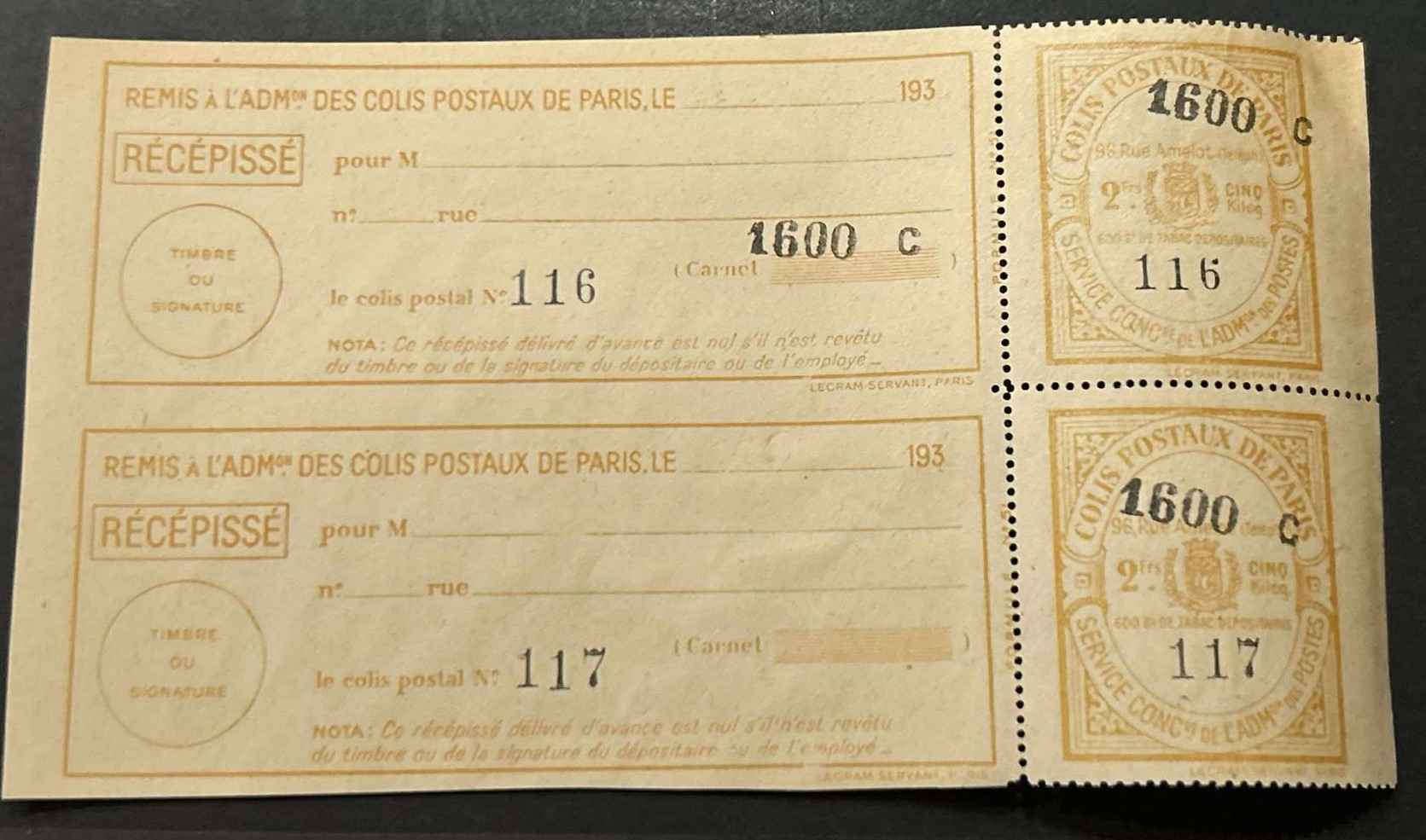 Bonjour, Est ce que quelqu'un aurait la cote et l'année de ce colis postal. Merci de votre aide. En vous remerciant par avance. MICAROLYS